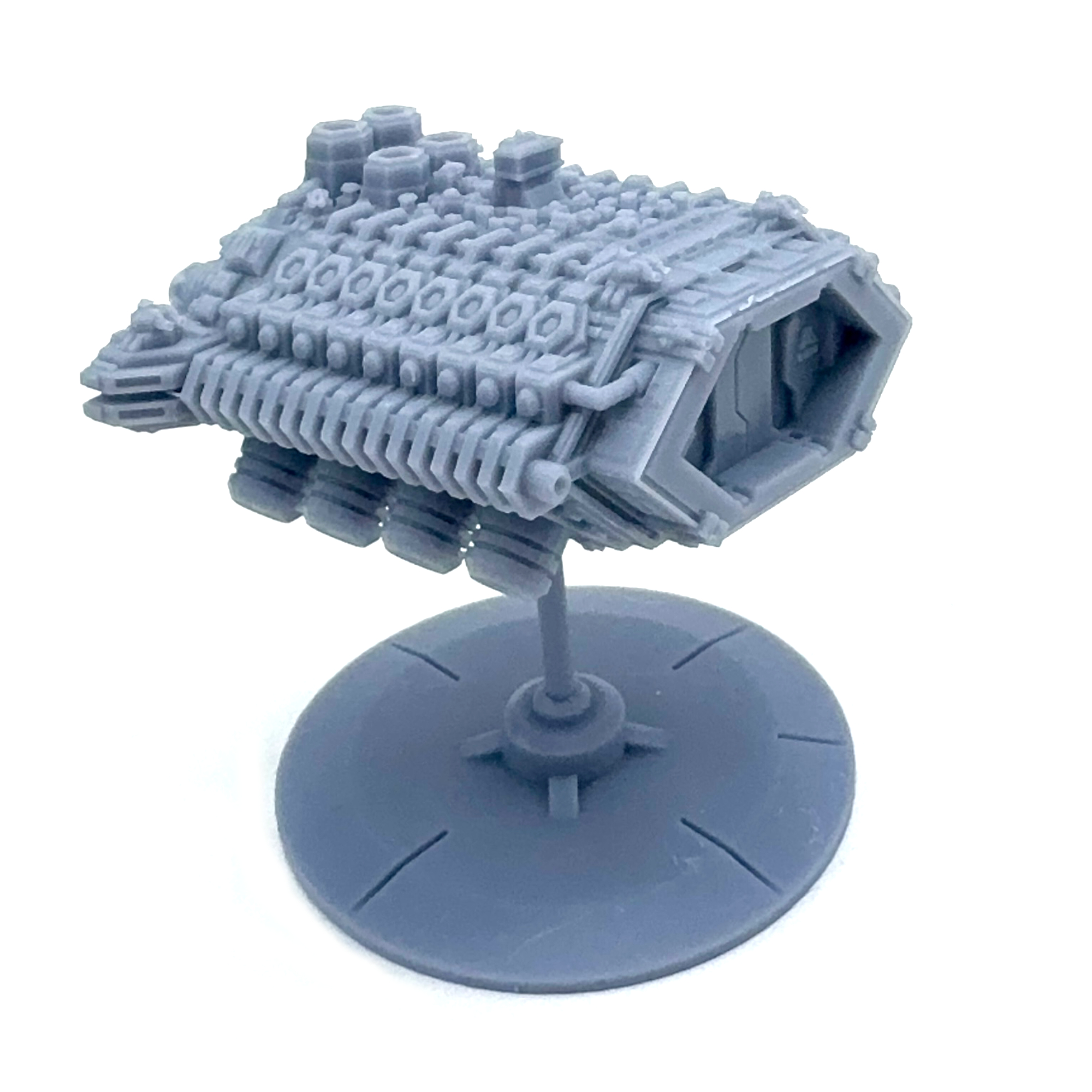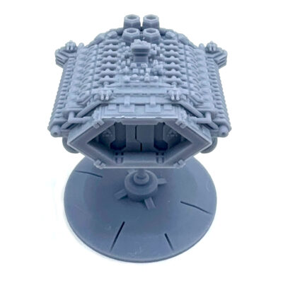 Single model, Space Dwarf drilling facility by Fusion Shipyards. The model is around 60mm long and 66mm wide and is printed in resin.